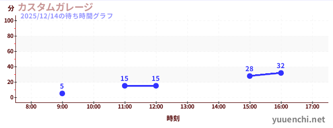 2025/12/14の待ち時間グラフ (カスタムガレージ)