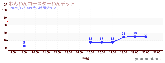2025/12/14の待ち時間グラフ (わんわんコースターわんデット)