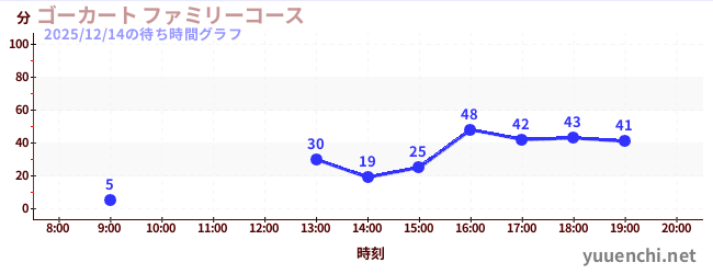 2025/12/14の待ち時間グラフ (ゴーカート ファミリーコース)