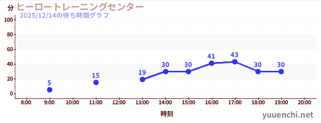 2025/12/14の待ち時間グラフ (ヒーロートレーニングセンター )