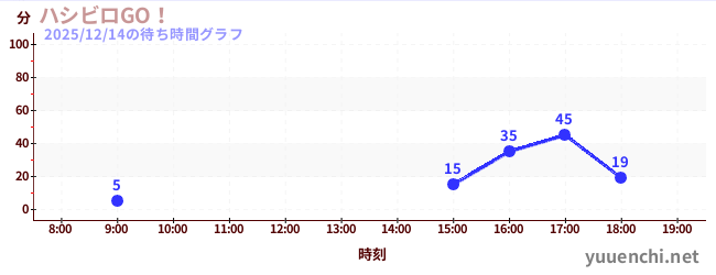 2025/12/14の待ち時間グラフ (ハシビロGO!)