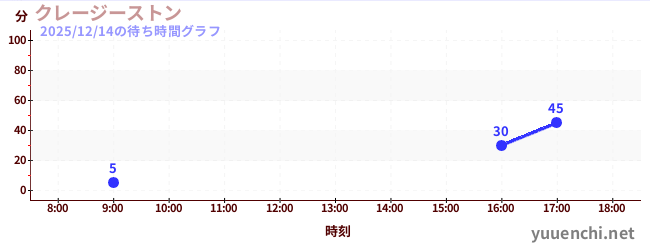 2025/12/14の待ち時間グラフ (クレージーストン)
