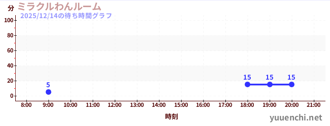 2025/12/14の待ち時間グラフ (ミラクルわんルーム)