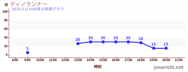 2025/12/14の待ち時間グラフ (ディノランナー)