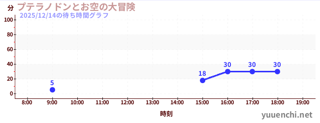 2025/12/14の待ち時間グラフ (プテラノドンとお空の大冒険)