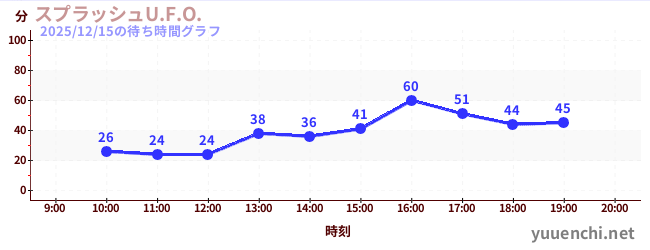 2025/12/15の待ち時間グラフ (スプラッシュU.F.O.)