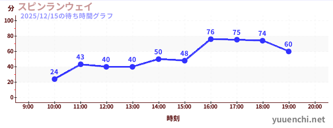 2025/12/15の待ち時間グラフ (スピンランウェイ)
