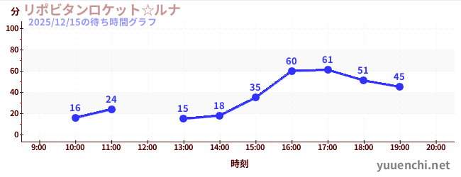 2025/12/15の待ち時間グラフ (リポビタンロケット☆ルナ)