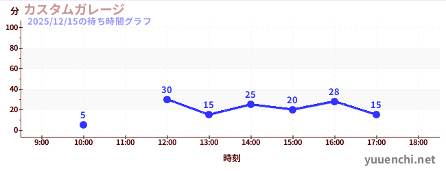 2025/12/15の待ち時間グラフ (カスタムガレージ)