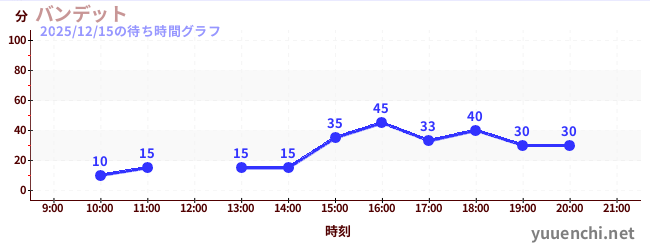 2025/12/15の待ち時間グラフ (バンジージャンプ)