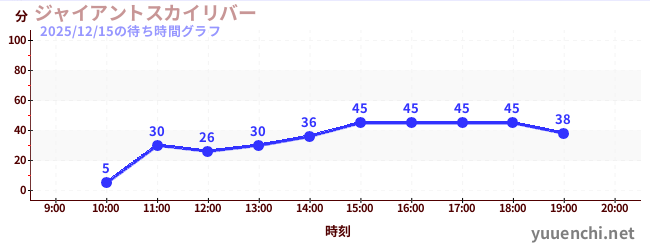 2025/12/15の待ち時間グラフ (ジャイアントスカイリバー)
