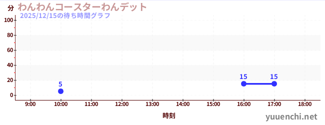 2025/12/15の待ち時間グラフ (わんわんコースターわんデット)