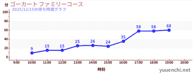 2025/12/15の待ち時間グラフ (ゴーカート ファミリーコース)