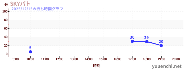 2025/12/15の待ち時間グラフ (Sky-Go-LAND)