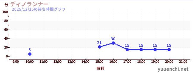 2025/12/15の待ち時間グラフ (ディノランナー)