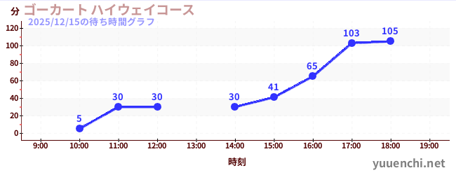 2025/12/15の待ち時間グラフ (ゴーカート ハイウェイコース)