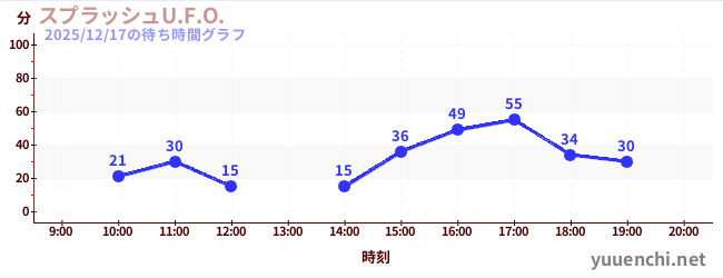 2025/12/17の待ち時間グラフ (スプラッシュU.F.O.)