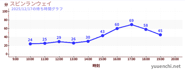 2025/12/17の待ち時間グラフ (スピンランウェイ)