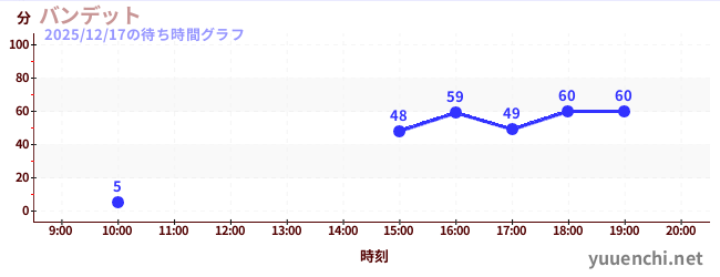 2025/12/17の待ち時間グラフ (スプラッシュバンデット)