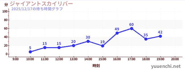 2025/12/17の待ち時間グラフ (ジャイアントスカイリバー)