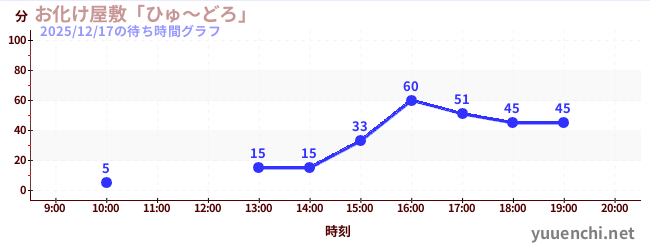 2025/12/17の待ち時間グラフ (お化け屋敷「ひゅ~どろ」)