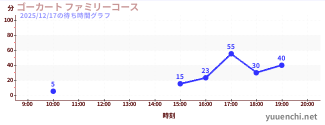 2025/12/17の待ち時間グラフ (ゴーカート ファミリーコース)