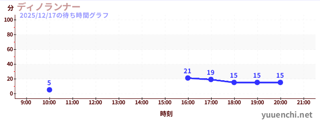 2025/12/17の待ち時間グラフ (ディノランナー)