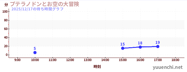 2025/12/17の待ち時間グラフ (プテラノドンとお空の大冒険)