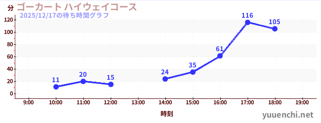 2025/12/17の待ち時間グラフ (ゴーカート ハイウェイコース)