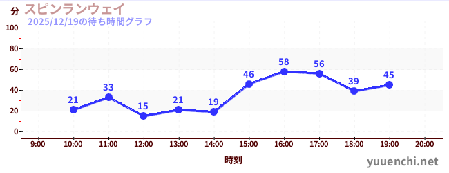 2025/12/19の待ち時間グラフ (スピンランウェイ)