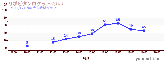 2025/12/19の待ち時間グラフ (リポビタンロケット☆ルナ)