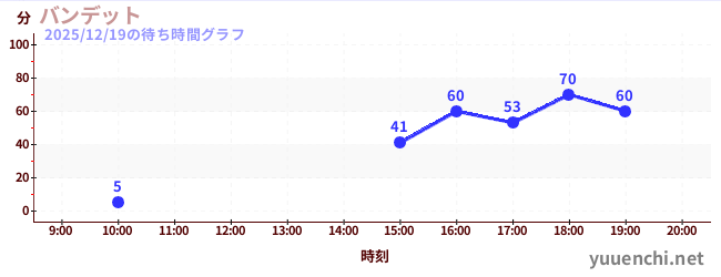 2025/12/19の待ち時間グラフ (スプラッシュバンデット)
