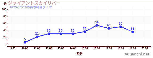 2025/12/19の待ち時間グラフ (ジャイアントスカイリバー)