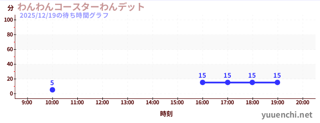 2025/12/19の待ち時間グラフ (わんわんコースターわんデット)