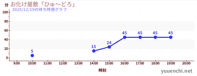2025/12/19の待ち時間グラフ (お化け屋敷「ひゅ~どろ」)