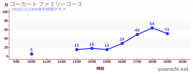 2025/12/19の待ち時間グラフ (ゴーカート ファミリーコース)
