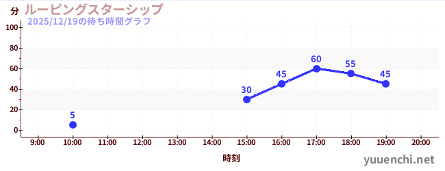 2025/12/19の待ち時間グラフ (ルーピングスターシップ)