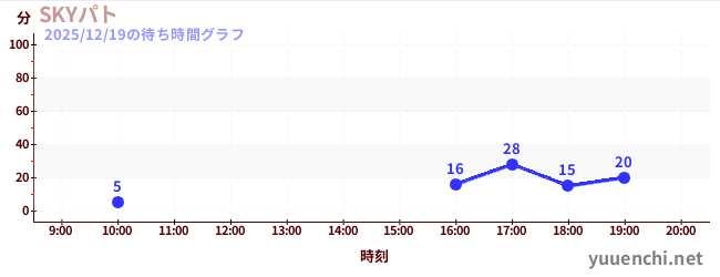 2025/12/19の待ち時間グラフ (Sky-Go-LAND)