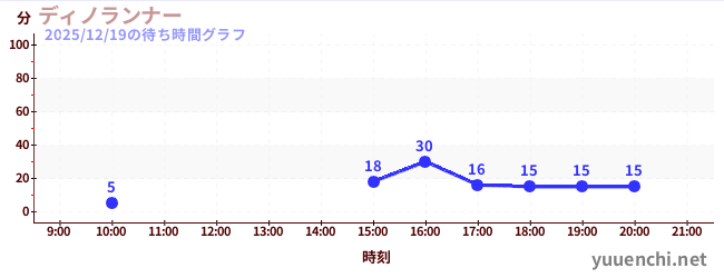2025/12/19の待ち時間グラフ (ディノランナー)