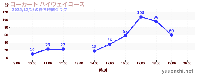 2025/12/19の待ち時間グラフ (ゴーカート ハイウェイコース)