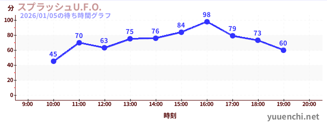 2026/01/05の待ち時間グラフ (スプラッシュU.F.O.)
