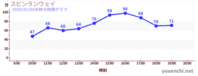2026/01/05の待ち時間グラフ (スピンランウェイ)