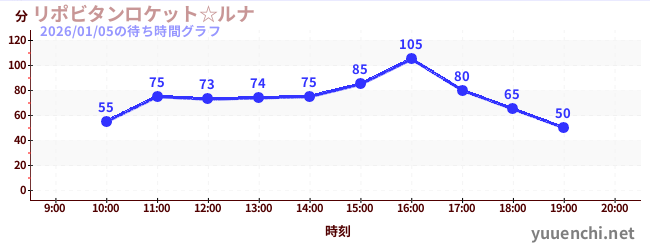 2026/01/05の待ち時間グラフ (リポビタンロケット☆ルナ)