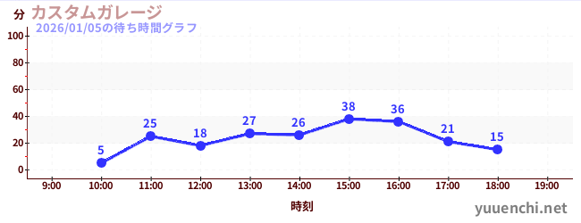 2026/01/05の待ち時間グラフ (カスタムガレージ)