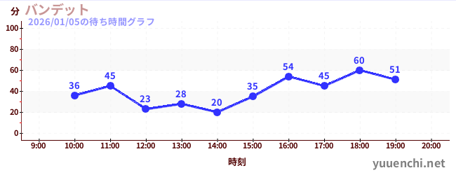 2026/01/05の待ち時間グラフ (バンジージャンプ)