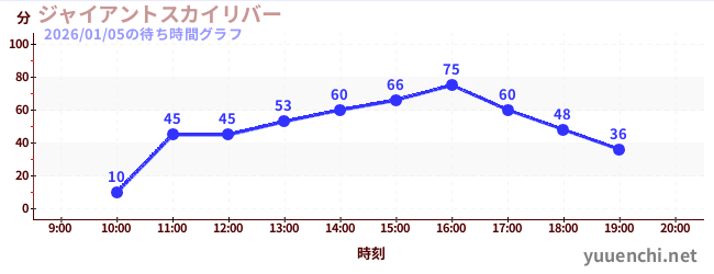 2026/01/05の待ち時間グラフ (ジャイアントスカイリバー)