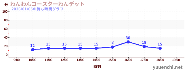 2026/01/05の待ち時間グラフ (わんわんコースターわんデット)