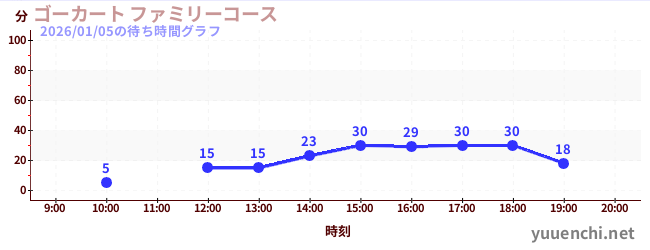 2026/01/05の待ち時間グラフ (ゴーカート ファミリーコース)