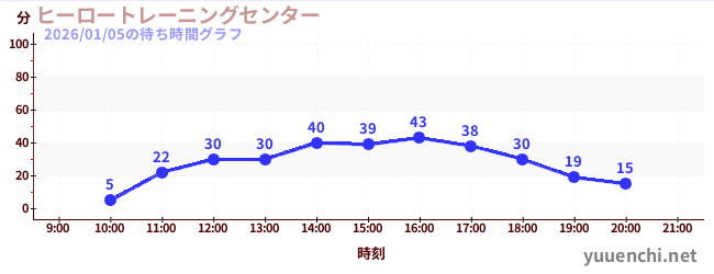 2026/01/05の待ち時間グラフ (ヒーロートレーニングセンター )