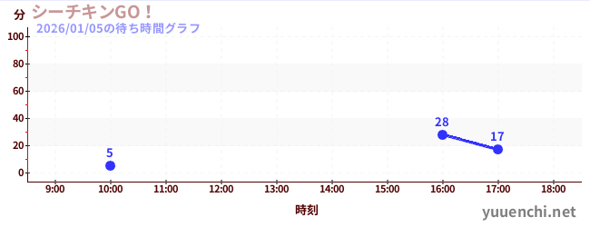 2026/01/05の待ち時間グラフ (シーチキンGO!)